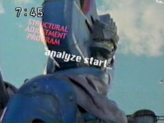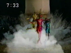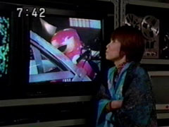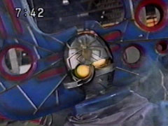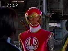 | At the Centipede, Sargain makes his plead to send out an attack, Tao Zanto gives him the okay. Sargain is actually a small ant operating the robot armor. He summons Jishakkumon to the Earth. Kouta helps a little girl rehablitate in the kindergarden. | Yousuke asks Kouta where his Hurricane Gyro is. It is his car. They are lured by a familar voice... of Nanami singing to a group of children. They talk after the performance and before Yousuke can scold Nanami for not wearing her changer.. |