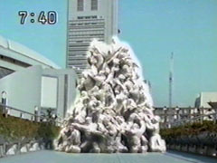 | Children come along and surround them and take Nanami and Kouta away. The monster starts pulling people together and floating away to pile into groups. He makes them into a statue. Yousuke is called by Nanami as he is washing windows. | Yousuke notices his teammates busy with the kids. He races through the city with his Hurricane jacket. He jumps on top of the monster and transforms. Yousuke is stuck to a car and a bunch of large objects are attracted to him. Oboro sees this. |