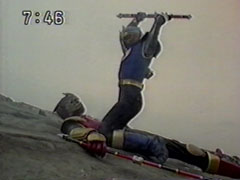 | Ikkou is still out of his mind, while Isshuu tells the story to the Hurricanger about their determined father. Their father trained this two sons, he wanted them to be Goraijer. He pit brother against brother. Isshuu shudders at the thought of the memories. | His father designed the armor and downloaded the information about the mecha into the message device. He later left and died. The Hurricanger try to convince him that he can change. He stresses that is the only reason they exist. |