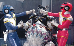 Yamimaru the Wandering Violent Demon Plots the downfall of Ragorn wth Kirika. Changes into student Nagareboshi Hikaru. Originally shaggy-haired, he later gains flashy red and black armor. Weapons: Shooting Star Gun, Darkknife, Darkaxe, Darkbow, Shooting Star Sword, Darksticks, Darkspear, Darkshuriken, Darkspider. Rides the giant bat Dragras. Kirika Half-human, half Violent Demon. Changes into student Tsukikage Sayoko. Armed with the five-pointed Ringknife. Can combine with Armor Violent Demon to become Armored Kirika. |
