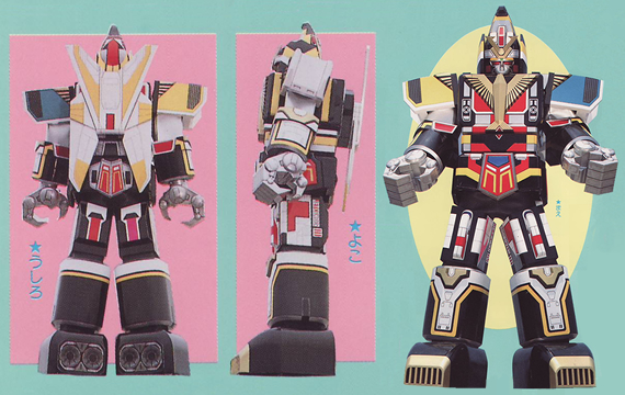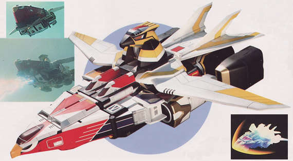 | Great Icarus The combination of Jet Ícarus and Jet Garuda into a powerful robot, formed from the command "Fusion! Great Scram" and armed with Great Beam that emits from its head and its finishing attack is Bird Maser. |
