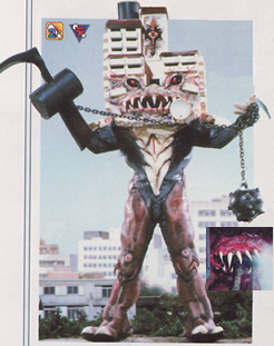 | EPISODES 8, 27 Diamond Jigen Maria places a biochanger on a rich man's famous 'bloody diamond' to create this monstter. Diamond Jigen induced insane greed to its victims. Ako was put under the spell. This monster was destroyed by Icarus Haken. |