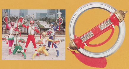 | Dairinkens (Big Wheel Blades) Circular bladed weapons given to the Dairangers by Grandmaster Yufang, first seen in Episode 13. By using their Chi power, they are able to launch them from their palms. When used altogether, the Dairangers can perform the finishing technique Dairinken Chi Power Shot. Each Dairanger had two of them and on one they could attach their Dai Rod blade. The blades are so sharp that Yufang could use it to chop onions. |