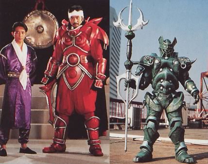 | Being a Gorma, one has to sell their soul to the devil for power but the price of selling your soul would be much more dire if or when you became more powerful but, you were still a slave. He certainly didn't want to be anyone's slave so he defected to the Dai. He took with him the captured Chi Beast Ryuuseioh once Chouryou betrayed the Dai with no one the wiser. Kaku maintained his contacts within the Gorma, ones who felt the same as he did about the tribe. Kaku hid his third eye, which all Gorma had, under a headband with the same color as his outfit. Shaddam wanted to be the next Emperor and couldn't be as long as Kaku existed because he was the next in line. Kaku relinquished his freedom in order to save the world. He was forced to return to the Gorma. He let his beloved students think he had betrayed them, to disarm them to compel Shadam stop the war. He tried to overthrow Shadam by using the Tower of You Power and the Tower of Chi Power as boost. Gara and Zaidosu destroyed these powers. Forced to fight to the death, and despite his best efforts he was defeated by Shadam and died in his students' arms in episode 48. He later appeared in spirit to the Dairangers in episode 50, telling them Gorma must be thwarted rather than be destroyed. His students stopped the Gorma at last, and the world was not destroyed. | |