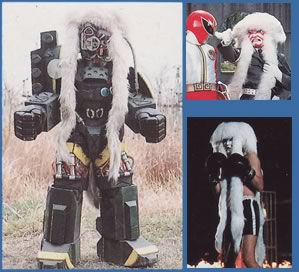 He could possess or injest people to gain full-control over any special talents they had, like boxing and kendo, which presented the Dairangers with difficulty when they had to face him without killing the person he possessed. He mostly seemed to be after money, as he targeted banks. He was pursued by Yufang for abducting his fiance, Shoukyou, to lend his Kabuki talent greater authenticity when playing feminine roles. He was wounded by the Dairenkens and killed by Dairen'oh. As for his name, 'Priestling' could incorporate that he is a novice at being a priest. |