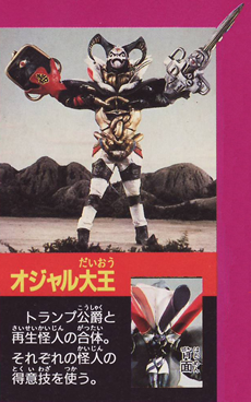 Ojaru Daio Different Sources have different translations: Great King Ojaru Combination of Toranpu Koushaku, Himo Danshaku, Gamaguchi Houshi, Kagidoukeshi and Kuchibeniuta Hime to counter Dairenoh's formation. It was killed by Dairen'oh. |