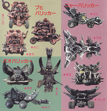Moo Barricar This cow-like vehicle driven by a green Wumper. It tried to scrape Red Vehicle in the Episode 5 before Blue Vehicle pushed it off. [Left]