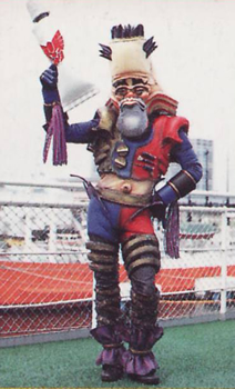 EPISODE 35 GG Boon Bowzock's best errand guy, sent to Earth to pick up lunch for the Bowzock, Zonnette being hungry. He was cut a turn in front of Kyousuke when he was attempting to buy lunch for the others. Unfortunately Kyousuke was hungry during that time too and couldn't put up a fight. This was also when Signalman, who was evil due to his planet's poisoned atmosphere, ambushed Kyuosuke too. GG Boon was killed by VRV Robo and Zonnette never got her lunch GG Boon was to get her. |