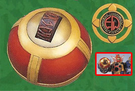 Karakuri Ball 02: Goat Crusher Ranger: Hurricane Yellow Crushing hammer extends to flatten monsters. Used by the Senpuujin. Specialty of the Hurricane Yellow. Oboru teleports a Shinobi Medal to Yellow to get this ball. The Goat Crusher unrolls to become a hammer called the God Hammer. It first appears in Episode 4. |