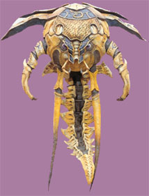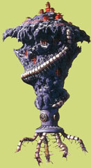 | EPISODE 36-37: Manmaruba Manmaruba forsaw his defeat by Kabuto Raijer somewhere around Episode 28. He prepared for this by getting a new cacoon for himself on Episode 31. It seems empty but a heart is heard beating in it. He was defeated by Kabuto Raijer at the end of Episode 33. Tao Zanto punishes Satorakura for that, because he was the one in charge of the monster of the week--the Fangurlu. At the end of Episode 34, a new Manmaruba is being born out of a cacoon---first in the small form. At the end of Episode 35, the adult Manmaruba emerges out of the cacoon. In Episode 36, he plants collars on the Goraijer's love ones (people they have helped and kids they thought martial arts to) including the Hurricanger. These collars makes them go to sleep. After a certain level, the victims choke to death. Manmaruba gets on a new bike and fights the Goraijer on their Bari Thunders. He finally grows to this big ugly bug. The Hurricanger awake from their slumber. The Goraijer are swallowed by the top head hatch of the monster. |