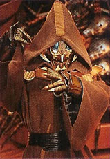 | Satorakura with his mask off and with a nifty weapon in Episode 49. He defeated Shurikenger and was defeated by him. | |