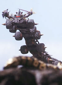 Unstoppable Connection Living Ship Barugigenia Total length: 95m Total weight: 9150t This comes out of Anomalocaris II (2), the Evorian Mothership in episodes 1 and 2. The Barugigenia is piloted by Jeanne starting in episode 31. It can seperate its connected parts. It can fly like a jet aircraft and drive like a streetcar on the ground. The name could mean "Burgus Shale Rocks" where the fossils of nomalocaris were found. It can't even be stopped by Brachio, leaving Abareno with a tough fight. Infromation from Matt Hunt. |