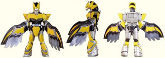 | MagiGaruda MagiYellow's majin form. Height: 26.7 Width: 15. 3 Weight: 950 tons Weapon: Garuda Wing Attack: Garuda Attack |