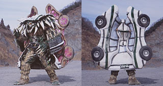 Infershia Monsters > Dark Beasts Reffered to as meijuu which means Hades Beasts. ![]() EPISODE ONE: Troll Height: 503 cm (a regular monster is around 200 cm) Weight: 306 cm Myth Origin: A troll is a fearsome member of a mythical anthropomorph race from Scandinavian folklore. One type is similar to the ogres of English fairy tales. This giant beast (not mecha-giant, taller than a two-story house) attacked the suburb area where the Oz family lives at until Magimother freezes him with her power and he shatters apart. He was quickly disposed of. ![]() EPISODE TWO: Blob Height: 27.4 m Weight: 33 tons His club-shaped hand also becomes a cannon that spits out pea-looking pellets. He ate MagiRed and Magigreen literally and there were sneezed out when MagiPink becomes a pepper shaker. They fight with him in their Majin forms. ![]() EPISODE THREE: Dark Beast Worm Height: 52.3 m Length: 105.7 m Weight: 82.8 tons This huge eight headed worm would jump out of the ground and devour their victims. Whichever Haizobiru that would smack their whip on the ground, this worm would come out. They used MagiDragon aganist it. MagiPhoenix kicked a fire ball from MagiDragon to destroy this one. ![]() EPISODE FOUR: Cockatrice Height: 205 cm to 49 m Weight: 103 kg to 24.6 tons Myth Origin: A mythical creature with dragon's form and a rooster's head. Its reputed magical abilities include turning people to stone by either looking at them, touching them, or sometimes breathing on them, like a dragon breathing fire. Also reffered to as a Basilisk. He would turn his victims to stone with his breath, including MagiBlue. MagiRed used a mirror aganist his attack and he turned stone. MagiRed used his fire attack and destroyed him. WolZard used his dark magic (a infershia symbol appeared) to make him bigger. The Magiranger used MagiKing to finally dispose of him. ![]() EPISODE FIVE: Hell's Beast Mimic Height: 223 cm to 49.3 m Weight: 134 kg to 28.4 tons He was Vankyuria's pet that would obey them and could mimic a taxi cab. MagiPink disguised herself as Vankyuria to trick him into a rock quarry where they defeated him. MagiGreen, Yellow, and Blue were researching on the praying mantis that mimics one thing to trick their prey. This monster attacked Yamazaki and Red saved her from it. They defeated him with MagiKing. ![]() EPISODE SEVEN: Fungus Height: 216 cm to 31.5 m Weight: 111 kg to 16.2 tons He sends out a awful odor and fog that turns people in sand-like substance. This did not effect the Magiranger. He used a red cloud that made Magigreen, pink, and blue slow down in time. Luckily, Magiblue carried a potion her brother Magiyellow made eariler that made them all accelerate. MagiPhoenix and MagiGaruda took him down with MagiFairy as a ball. ![]() EPISODE EIGHT: Manticore Height: 209 cm to 30.4 m Weight: 106 kg to 15.5 tons Myth Origin: The manticore is a kind of chimera with the head of a man often with horns, blue eyes, several rows of iron teeth, the body of a (sometimes red-furred) lion, and the tail of a scorpion. He first attacked a actress that was shooting a cheerleading movie. He would bang on different parts of his body and armro to make drumming sounds. This would cause his victims to dance and then he would do them in. Once he was hit hard, the spell would ware off. Magiblue and Magipink defeated him with a dance rountine using the Ending Theme of the show. ![]() EPISODE NINE: Troll Height: 505cm Weight: 310kg Another troll, now with black clothing. The Magiranger destroyed him with a group attack but Wolzard brought him back and he had a the the energy Wolzard took from the rangers that enables them to form Magiking in his hand.... ![]() EPISODE NINE: Stone Troll/Golem Height: 48m Weight: 29.5 tons Myth Origin: In Jewish folklore, a golem is an animated being crafted from inanimate material. He became this new form and instantly became bigger. He took the energy Wolzard took from the rangers that enables them to form Magiking to make himself stronger. Stone Troll basically used Magiking's power. He did a similar 'Magical Showtime' attack but instead of MagiCalber, he threw multiple boulder clubs. It was defeated by Kai and his new form FireKaizer. ![]() EPISODE TEN: Petit Jericho Height: 263cm to 55.1m Weight: 111kg to 23.2t Eriko, Makito's crush gives him this cactus plant and uses Mandora-boy's pot much to his dismay---and the other siblings because he makes a ear-piercing scream when removed from his pot. Makito was wearing headphones. It was possessed by the creature below. It becomes this monster after eating various things in a very 'Little Shop of Horrors' sort of way. Mandora-boy was the only one to witness it eating things at first and tried to warn them but they didn't see anything in another horror movie rule. It wouldn't eat salad. Strange enough, it ate books and lamps but didn't eat a milk carton (drank milk) or a plate (ate eggs from the plate). It could throw needles. Using a new MagiKing magic "Magical Shower", it was able to turn back into an ordinary cactus.