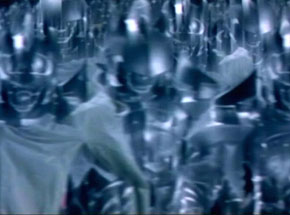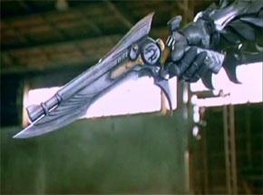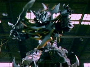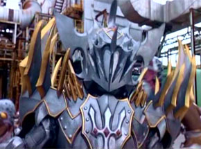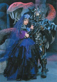 For the wedding, the hades lair became a chapel, Memmi the priest and Nai~Mea were the bridemaids. The bride had a bouquet of purple flowers with a skull placed on it. Glum has a third form that is with a cape and spikes on his shoulders, his mask was spiked like in his second form. The Magiranger defeated him the first time with a group fire attack. |