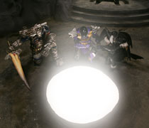 Buranken, Vanculia, and Urzard bow to N.Ma in their evil lair. |
