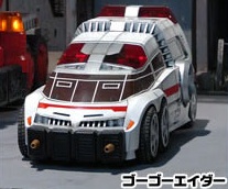 Kinkyu GoGo Gattai SairenBiruda English Translation: Emergency Rumbling Fusion Siren Builder Height: 50.0 m Width: 39.0 m Weight: 3500 t Output Power: 400 km/h BoukenSilver's robo. SirenBuilder has the ability to "Jack Up", which involves GoGo Fire's leg formation activating or deactivating at his command, which allows Siren Builder to dodge attacks. Also has Neo-Parallel Engine which is technically a Precious, so its energy was sucked out by Gajya by the finale causing a surge. Presumably, the three GouGouVehicles were later restored. Gattai Name: Siren Formation Attacks: Kunuckle Magnum (from Aider and Police) and the finisher Triple Liquid Bomber |