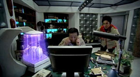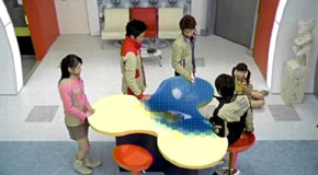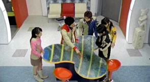 The table in the center of the headquarters can be activated by a handheld device to be a map. Mister Voice can also activate it at his whim. |