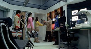 The headquarters is a multi-functional area with many books, statues, a exercise bike and a bay to fix gadgetry. |
