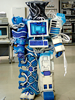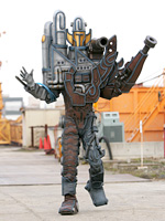 Jougami EPISODE 3 Height: 206cm to 49.2m Weight: 96.8kg to 23.1t Created from an antique sewing machine and laser discs to help Shizuka in retrieving the Three-Country Swords of Leadership. His sword was made of two combined Three-Country Swords. He was destroyed by Daibouken. NOTE: The First-Cheer Drum brought him back in Episode 24 along with others. |