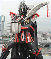 |  | Aquatic Assault Minister Kegalesia Height: 191 cm to 49.6 m Weight: 54 kg to 140.5 tons When Kegaleshia steams up, her comrades can turn it off by turning her valve on her helmet. In Episode 4, she is the first to face the Go-Ongers and it is discovered she is machinery underneath, meaning she is an android. She can also quickly heal. She ends her sentences with "Ojaru", is a heavy drinker, and hates to be called "Old Lady." In Episode 14, she donned the guise of Rena Kegareshi to figure out the secret of a dojo owner who bested one of her minions and Hanto falls in love with her and calls her beautiful and pure, which is offensive to her, so she develops a vendetta towards him. She has helped Go-On Silver and Go-on Yellow as part of the singing group G3 to defeat a common enemy. But when insulted by a little girl, she grew huge in rage. She is annoyed when Yogoshimacritein uses her and Kitaneidas |