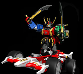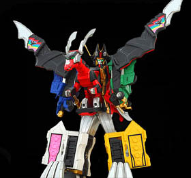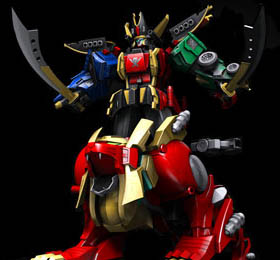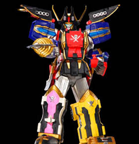 Kanzen GokaiOh It is the combination of Gokaioh, Gojyujin, and Machalcon when the Great Powers of the Gokaigers, the Kanzen Soul, is used. Kanzen Gokaioh can use the Kanzen Drill on its right arm and the Kanzen Missiles on its left hand. Kanzen Gokaioh's finishing attack is the Gokai Kanzen Burst firing its left hand to execute a powerful rocket punch. With Magi Dragon, Pat Striker, Gao Lion, and Fuuraimaru adding their power into the Gokai Kanzen Burst, Kanzen Gokaioh can perform a stronger version of it called the Gokai Kanzen Super Burst. In Gokaiger vs. Gavan, Kanzen Gokaioh combines with Gavan's Electronic Starbeast Dol by riding on it in a formation known as Kanzen Gokaioh & Dol. |
