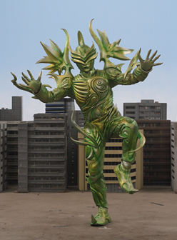 EPISODE THIRTY-NINE Woodroid Moririn Height: 49.3 m Weight: 370 tons A green colored plant-based giant produced alongside Soilroid Dororin after Basco fails to acquire the Megarangers' greater power. It is able to extend its vine arms and entangle its opponents with them. Both Dororin and Moririn are destroyed by Kanzen Gokaioh. |