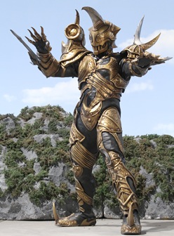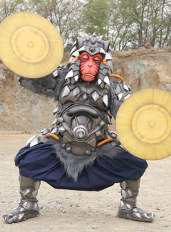 | Height: 203 cm Weight: 160 kg Basco ta Jolokia is a privateer who travels with Sally on the allied Zangyack ship Free Joker, his code of conduct being to discard something to get a better item. He is a former friend of Marvelous, they were members of the Red Pirates, serving as a cook aboard the Gokai Galleon until he betrayed Aka Red and Marv-chan to the Zangyack Though he lost the chest to Captain Marvelous, Basco obtained the Ranger Keys of the Sixth Rangers and extra Sentai heroes which were still in space. He uses a trumpet-like device to conjure them to fight for him. In addition, Basco carries a gold Mobirates, which bears his personal symbol and has the keyhole sealed shut. Arriving to Earth after being contacted by Damaras, Basco uses his Ranger Keys in a scheme to steal Captain Marvelous's crew, holding them ransom to get the remaining Ranger Keys. The Rangers get those keys and later give them to Gai. Then Basco's scheme was steal the Great Powers from the legends using the trumpet and muscle from the Extra Heroes. Basco steals the power from Changeman and makes a deal to take the Ohranger power from Oh Red. He double-crosses a double-cross and the Gokaiger manage to get the Ohranger power and all the Extra Hero keys. Basco in turn shows his true form and hurts Gai's arm and beats the others. He reveals he also has the Flashman and Maskman powers. Next time they meet, he has teamed up with Damaras and has the Sun Vulcan and Fiveman powers. Basco sets up the illusion that he killed Joe, Ahim, Luka and Gai. Basco stabs Damaras in the back and he leaves him for the Gokaiger to destroy him. After watching the Gokaigers gain the Kakuranger power, Basco feeds them info they need to rescue Space Sheriff Gavan as part of an attempt to lure them away from their ship. However, he is intercepted by the newest Super Sentai, the Go-Busters. After a short battle, he withdraws. Basco finally makes his move to take the Great Powers from them as the Gokai Galleon crew intends to recover the five stolen powers. After losing his last Giant Lifeforms, he injures Sally on purpose so he could be taken in by the Gokaigers. He betrays Sally by setting a bomb on her and killing her and harming Marvelous, who was next to her. After defeating the team, Basco takes their Keys and commandeers their ship and make duplicates of Gokaiger from their keys. He still needs Navi to reach the treasure. After the team attempt to retake the ship, a wounded Captain Marvelous arrives to settle scores with Basco. He tells Marvelous that Aka Red used them to get the keys to return them to their original users. The epic duel ends when Gokai Red pins them both down by stepping on Basco's foot and then stabbing their feet together, so the two land death blows on each other. However, Marvelous manages to survive due a fragment of the bomb which killed Sally blocking Basco's shot, Basco collapses and dissolves into a red mist. The Rangers inherit the five stolen powers and receive the teams' approvals. Basco ta Jolokia's name comes from the names of Tabasco sauce and the Jolokia chili pepper. |