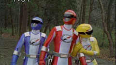Mogari grabs the Bouken Javelin and swings Red off. Mogari tends to his shoulder, Blue sees an opening and shoots at some rocks to fall on Mogari. Blue grabs Masumi and the three run off. | Sakura comes to and she finds herself and Natsuki tied to two rock poles inacave. Natsuki wakes up. They find Karths surrounding them. Meanwhile, Masumi tells the others to stay away from him. |
