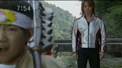 Masumi presents himself as the dog, Shouta as the monkey, and Natsuki as the pheasant. Sakura is bummed and doesn't say anything. Everyone turns to her. To Natsuki's uruging, she raises the Kibi Dango. Eiji grabs two of them, eats one and gives the other to Tarou. | Akashi hands him the Sword and he pulls it out. He goes forward as the others transform. The other four go to destroy the robo. Rei is sent after them. Gai blasts the family out of the cave and down. Eiji encourages Tarou, telling him he isa man. |