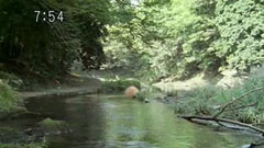 becomes the peach again and floats away in the river. Eiji sighs and turns around. Natsuki asks if he is lonely. Masumi teases him that he might be crying. Eiji shrugs it off and says he is relieved he is gone. Shouta | thinks he is putting up a front. Akashi is still crying. Sakura wonders if he will return back to normal. Eiji splashes water on Akashi. He tries to help him off but Akashi brushes him off and he falls in the river. |