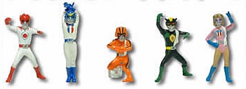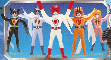 Battle Fever figures - Each figure sold seperately. Flexible and bendy figures. Battle Kenya, Battle France, Battle Japan, Battle Cossack, and Miss America. |