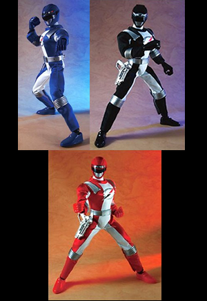 12" Boukenger - Bouken Black, Bouken Red, and Bouken Blue fully articulated. |