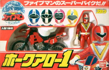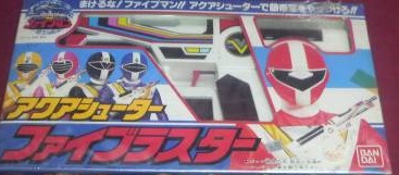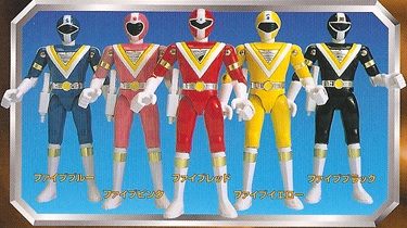 Fiveman figures - Blue, Red, Yellow, Pink and Black; Each figure came with weapons and sold seperately. |