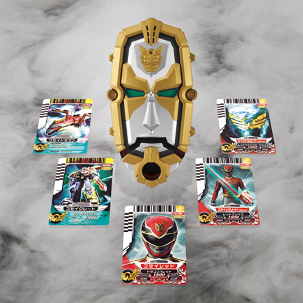 Tensouder - Transformation device for the Goseiger, open the mouth and place in the card. Comes with lights and sound. Come with all you see here. Released February 13th. |