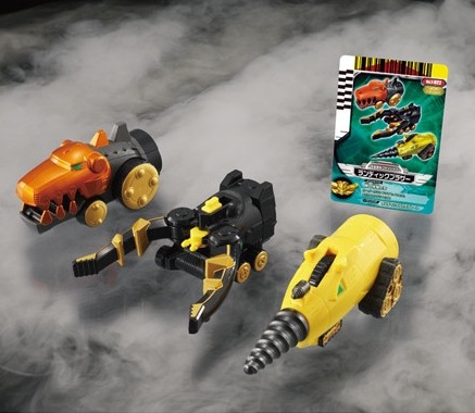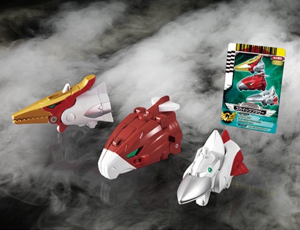 Gosei Great - Five Headers (Dragon, Snake, Tiger, Phoenix and Shark) combine to make one Gosei Great. A smaller and simpler version of this item as a candy toy. Released February 27th. |