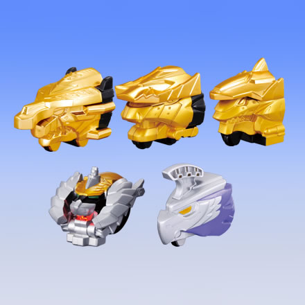 Capsule Gosei Headder Set #3 - Released om September of 2010 Includes the Golden Headders of Dragon, Shark and Snake; Grandleon and Gosei Bird. |