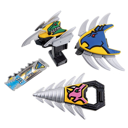 Kyoryuger Narikiri Set - Gaburevolver, Gabucalibur, and Kentospiker comes with Zyudenchi. |