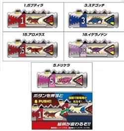 Zyudenchi Gashapon Set 3 - You can find # 1 Gabutyra, #3 Stegotchi, #5 Dricera, #6 Pteragordon, #7 Ankydon, #17 Ovirappoo, #18 Igeranodon and Abaranger. |
