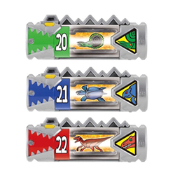 Deluxe Zyudenchi Set 2 - #20 Gurumonite, 21 Archenolon, and 22 Pukuptor. |