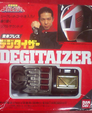 Digitizer - The five Megaranger's transformation item, comes with wrist brace and includes sounds and lights. Box incorrectly has it as 'Degitaizer.' |