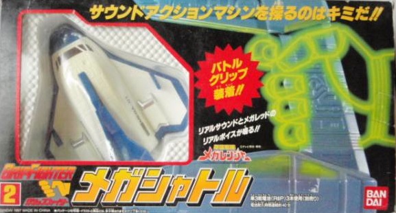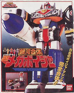 Deluxe Galaxy Mega - Two ships make one robo. The Shuttle Booster can also add weapons to the MegaShip by separating into three pieces with the fuel tank becoming a cannon on the underbelly and the rocket boosters go on the sides. |