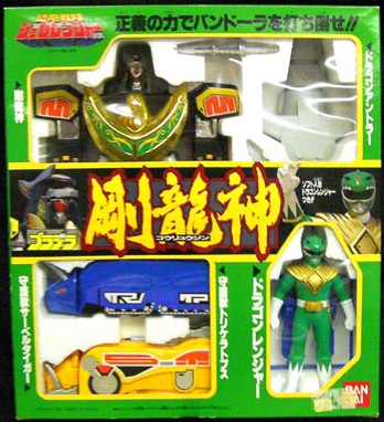 Gouryuujin - Smaller version of Gouryuujin, came with SaberTiger and Triceratops feet that came apart. Also included was a Dragon Ranger figure. |