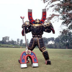 EPISODE 40 Degiusu A forced Majin, Degius was good wariror that became corrupted. Prince Biznella's mind control collar forced him to be evil. He was eventually killed and when he dies, GingaYellow turns his sword into a memorial by placing his sword on the beach to look like a cross gravestone (which is common in Japan) sticking out of the sand. |