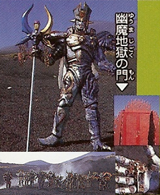 EPISODE THIRTY-ONE / FOURTY-TWO & FOURTY-THREE Bakyuum Cobra-like demon created by Salamandes that swallowed the younger Tatsumi siblings and could spray ice. Killed by Victory Mars. Was later summoned by Chaos when he and Salamandes brought the GoGo-V to Hell but Chaos lost control when his staff was broken. Its soul was swallowed by Salamandes in order for him to escape from Hell. |