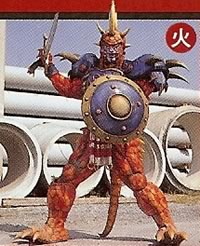 EPISODE THIRTY-NINE Rizaadesu A Dragon-warrior demon that had a striking resemblance to his creator, Salamandes. Drawing on the powers from the Inifinity card, the GoGo-V's weaponry were no match for it. Killed by Victory Mars, which flung him into the sun and therefore destroyed both the demon and the Infinity Card. |