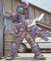 | EPISODE 23 Energy Settou Han Uugo Prisoner Number: 2707 An alien from Marshall Star, it sucked in energy. When damaged or full, it releases the energy in a terrible shockwave. Brought in by ShadowBeta. Uugo's identical uncle Bats was enhanced by Pierre in 'Timeranger vs GoGoV'. |