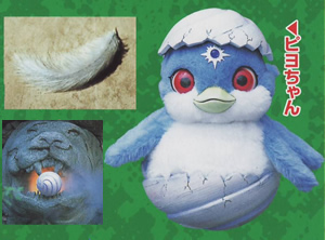 Yon In episode 27, when Vase Org transported GaoKing and GaoHunter into another dimension, a feather from Pyo escaped and the feather became Yon. Yon looks like Pyo-chan but has narrow eyes in a very irritated expression and the rangers considered him evil. He popped white spray often. Eventually, Tetomu convinced him to help the Gaorangers and become the Soul Bird. There were two Soul Birds and GaoMuscle Striker was formed for the first time. After the Vase Org was defeated, the two Soul Birds became one again. |