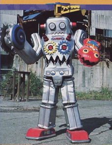 EPISODE 40 Tinplate Org He attacks a construction site. He can release fire from its mouth. GaoGod had taken the Power Animals away from the Gaorangers, GaoHunter had to battle alone aginst Tinplate Org. But with the energy that the five Gaorangers drew from their main Power Animals, GaoHunter was able to temporarily power up into GaoHunter Blue Moon. GaoGod helped fight. He was killed by GaoHunter Blue Moon. |