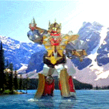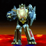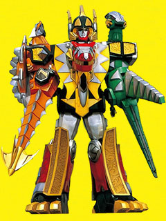 Bakuryu Gattai Abarenoh Weight: 4500 tons Total length: 46 meters Maximum traveling speed: 250 kilometer/H Shoulder length: 34.7 m Chest width: 26 m Installed capacity: 2,200 ten thousand horsepower The Tyrannosaurus, Triceratops, and Pterodactyl combine to create the Abarenoh. The Abarenoh is equipped with a vast array of weaponry; including the Bakuryuu Dengeki (lightning) Drill Spin, the Tricera Punch, and the Ptera Cutter. Formed in Episode 2. |